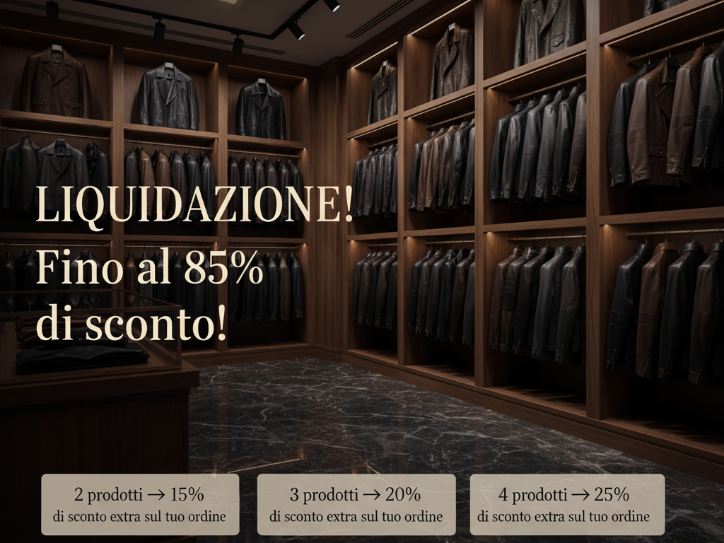 Dopo anni di appassionata attività nel settore della moda, siamo giunti al punto di liquidare le nostre scorte. Per accelerare questo processo, offriamo a voi, nostri clienti, sconti fino all'85%.