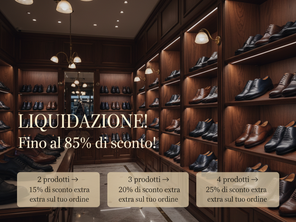 Dopo anni di appassionata attività nel settore della moda, siamo giunti al punto di liquidare le nostre scorte. Per accelerare questo processo, offriamo a voi, nostri clienti, sconti fino all'85%.